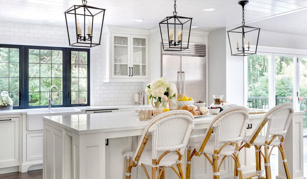 Vinyl and linoleum floors are popular in the kitchen because they’re affordable, low-maintenance, and easy care. However, these designs don’t stand the test of time as well as their more durable counterparts. Give your kitchen long-lasting appeal by choosing stone, tile, slate, or travertine. Homeowners can even find ceramic tile that looks exactly like real wood.
