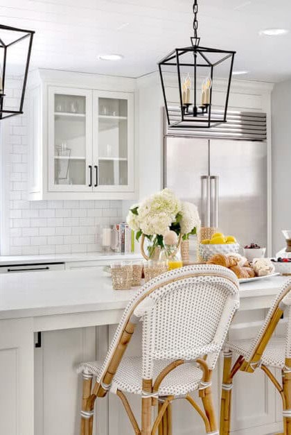Professional designers often recommend switching old fixtures for contemporary versions with appealing finishes. Copper brushed gold, stainless steel, and matte aluminum can instantly upgrade the kitchen’s faucet, range hood, drawer pulls, cabinet handles, and other metal odds and ends.