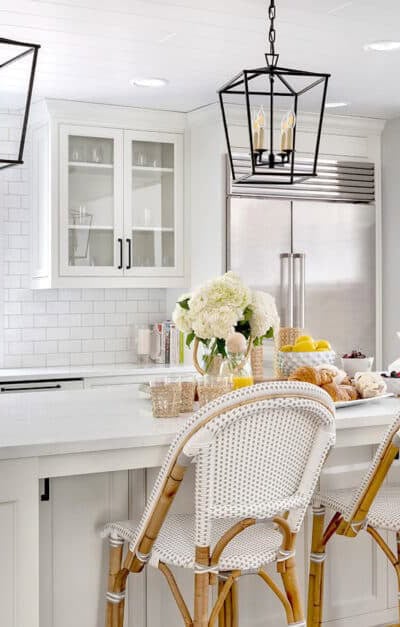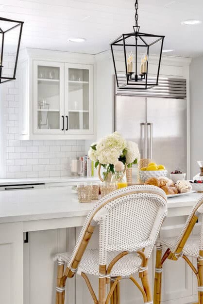 Those who prefer a more ornate aesthetic can take out the cabinets completely and replace them with open shelving that serves as a decorative element in and of itself.